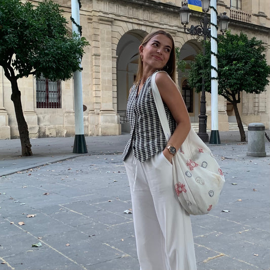 Nuestro bolso más relajado, el modelo saco, está confeccionado en algodón suave. Diseñado para aquellos días en los que buscas comodidad sin renunciar al estilo, este bolso es perfecto para cualquier ocasión casual. Su espacioso interior cuenta con dos prácticos bolsillos, ideales para mantener tus pertenencias organizadas y a mano, asegurándote de que nada se pierda. Con su diseño versátil y funcional, el modelo saco se convertirá en tu compañero favorito para todas tus aventuras diarias.