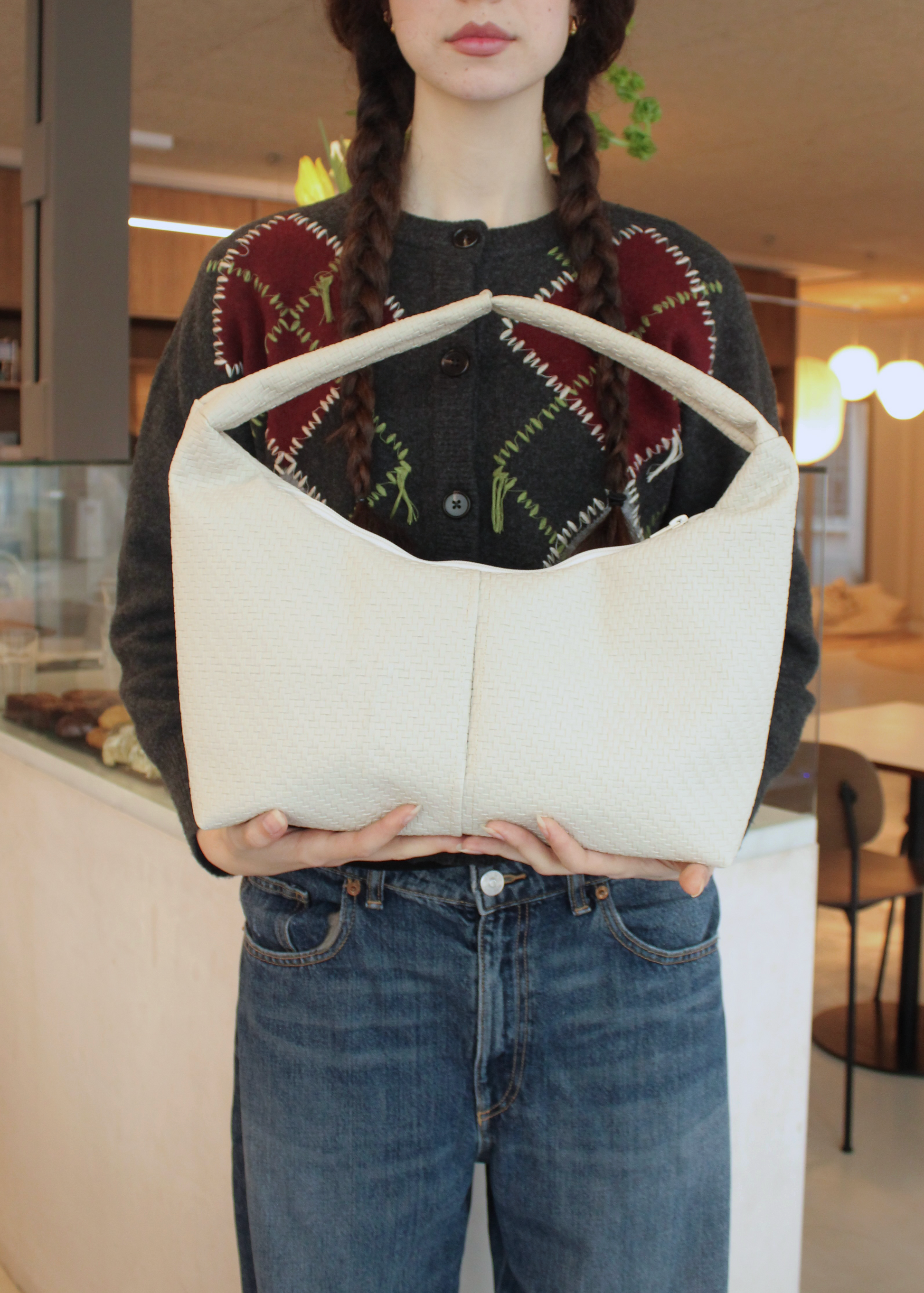 Bolso Trenzado Crema con Acabado Semi-Mate