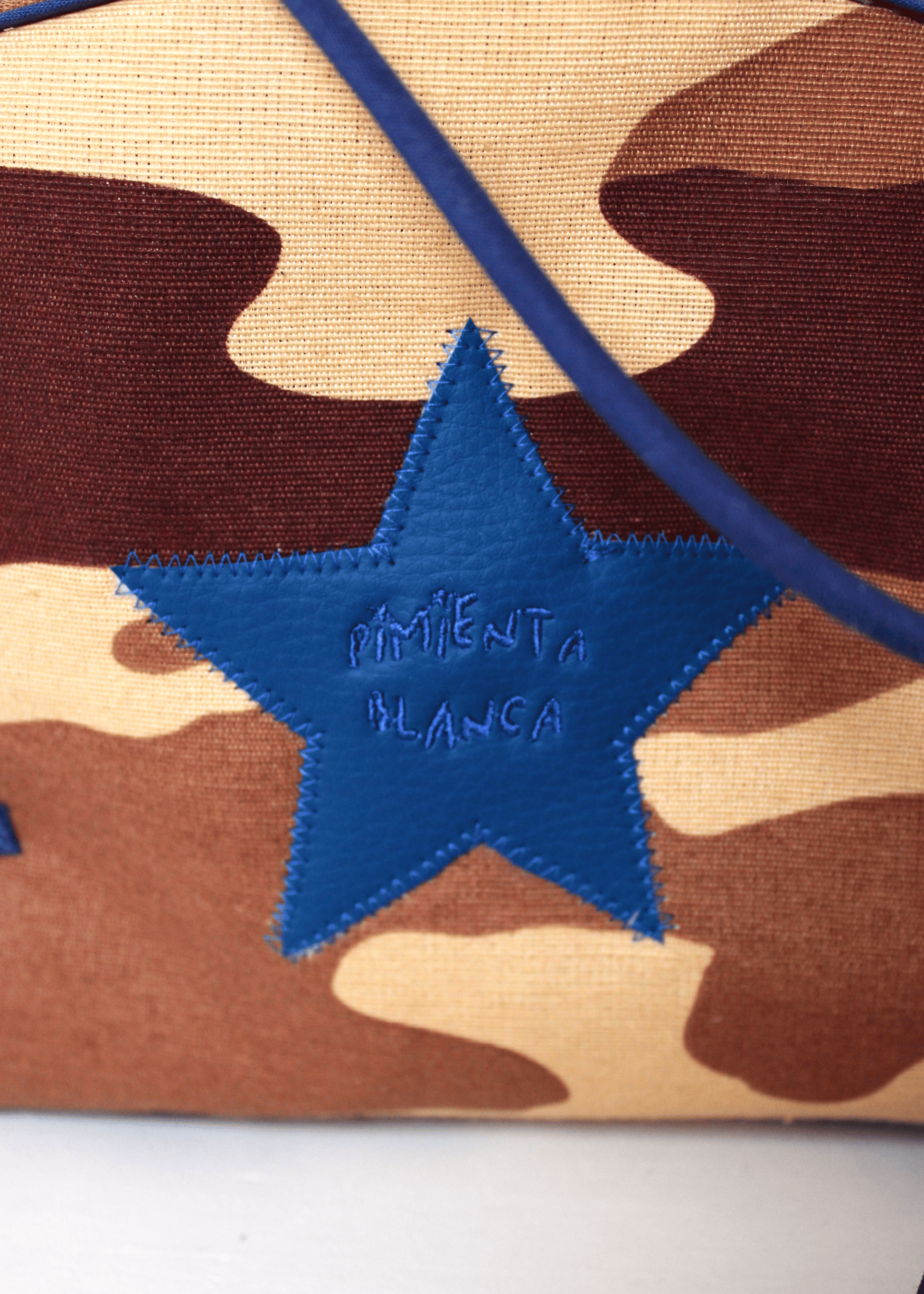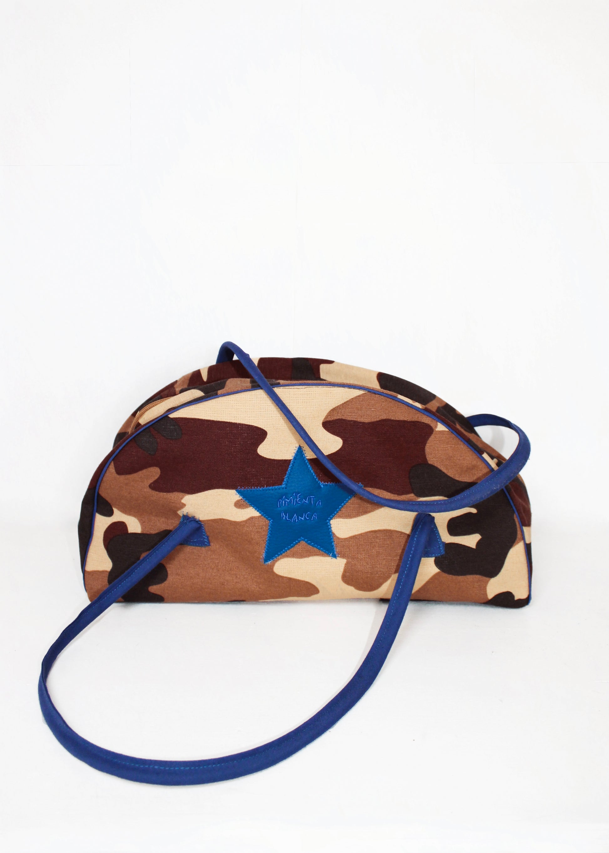 Bolso Media Luna Camuflaje Marrón con Estrella Bordada Azul