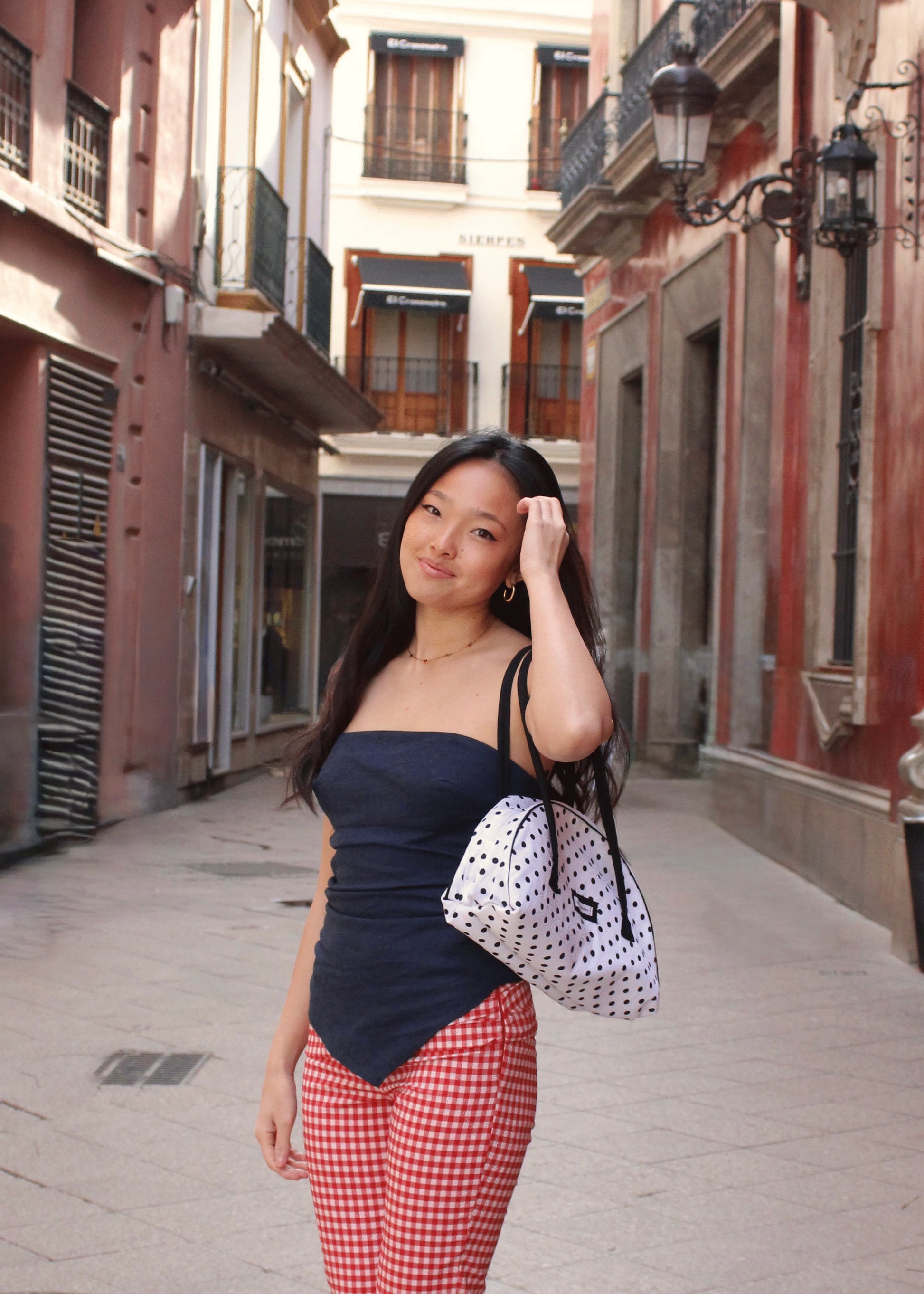 Este bolso está cosido a mano, por lo que la disposición de los lunares puede variar ligeramente, siempre manteniendo el mismo estilo, calidad y medidas.