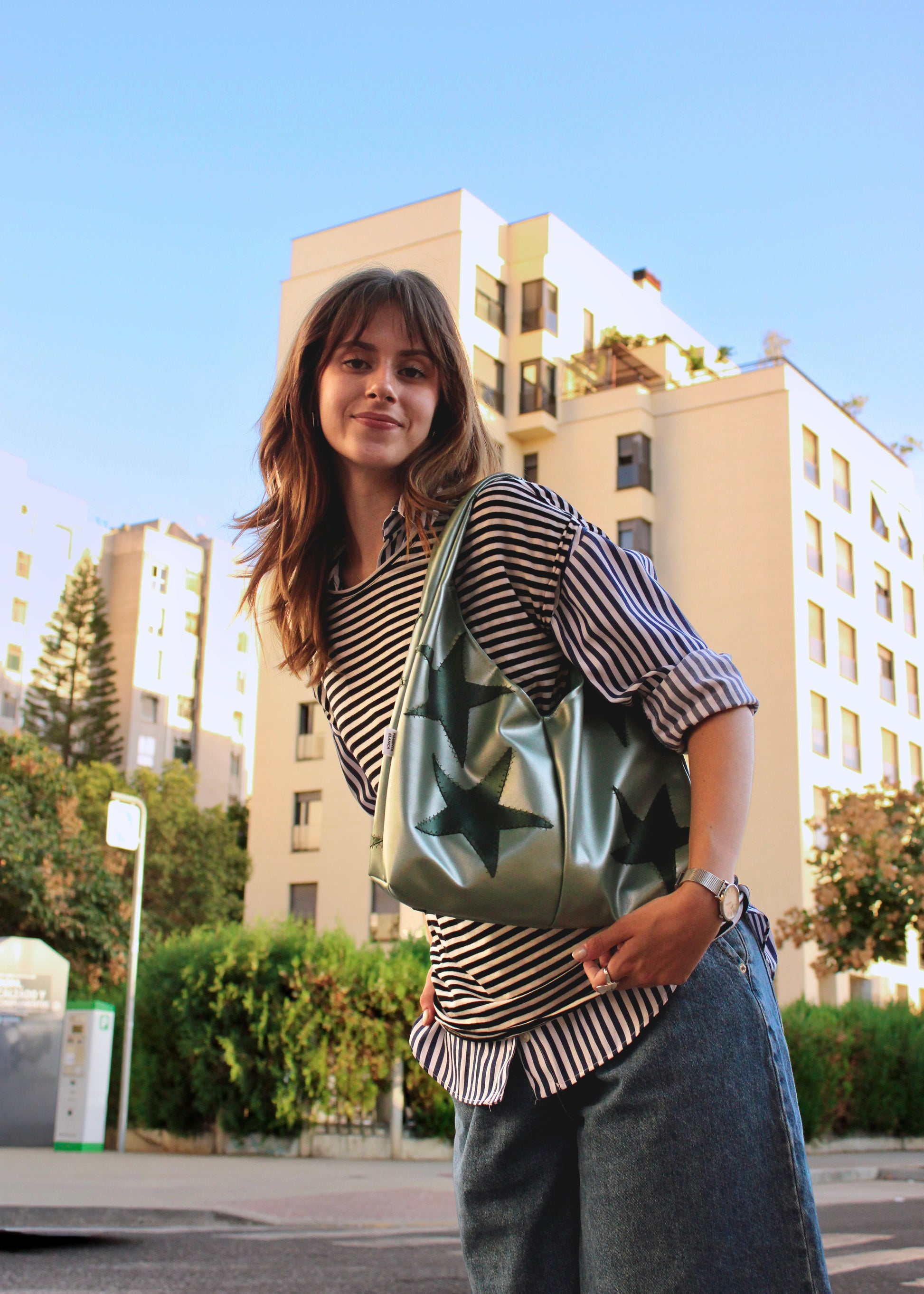 Este bolso esta cosido a mano, por lo tanto la disposicion del paisaje puede cambiar ligeramente, siempre manteniendo el mismo estilo, calidad y medidas.